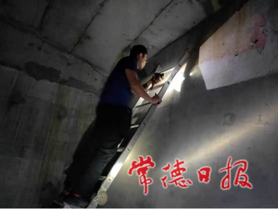 “夏季桥体的温度在65℃到70℃。”在朗州大桥箱梁内,满脸是汗的桥梁检测员秦小龙(taptap点点检测中心检测员)身正仔细检查着桥梁的每处结构。他告诉记者,桥体的箱梁是吸热的,头顶上就是滚烫的沥青和钢结构,他们相当于置身一个黑暗的“烤箱内”,在闷热的箱梁中弯着腰钻过一个个不足1米高的门洞,打着手电筒穿行在伸手不见五指的梁箱室中检测桥梁安全,是桥梁检测员的日常。