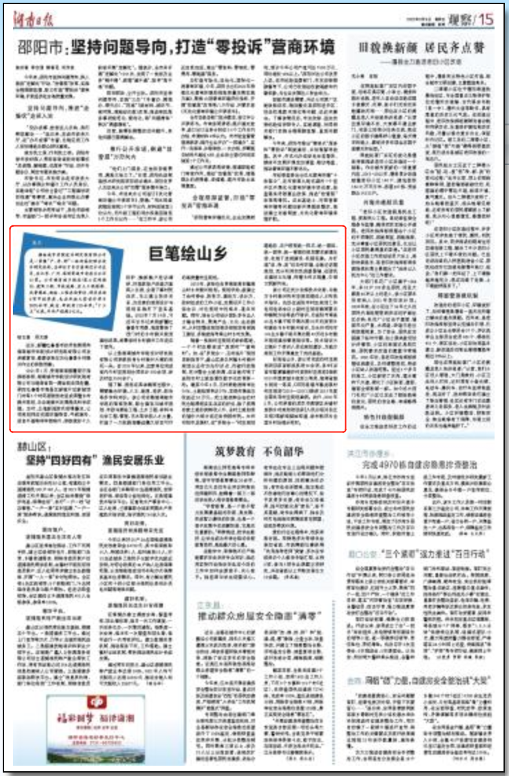 9月9日,《湖南日报》以“巨笔绘山乡”为题,专题报道taptap点点设计院乡村振兴工作,《新湖南》转载。