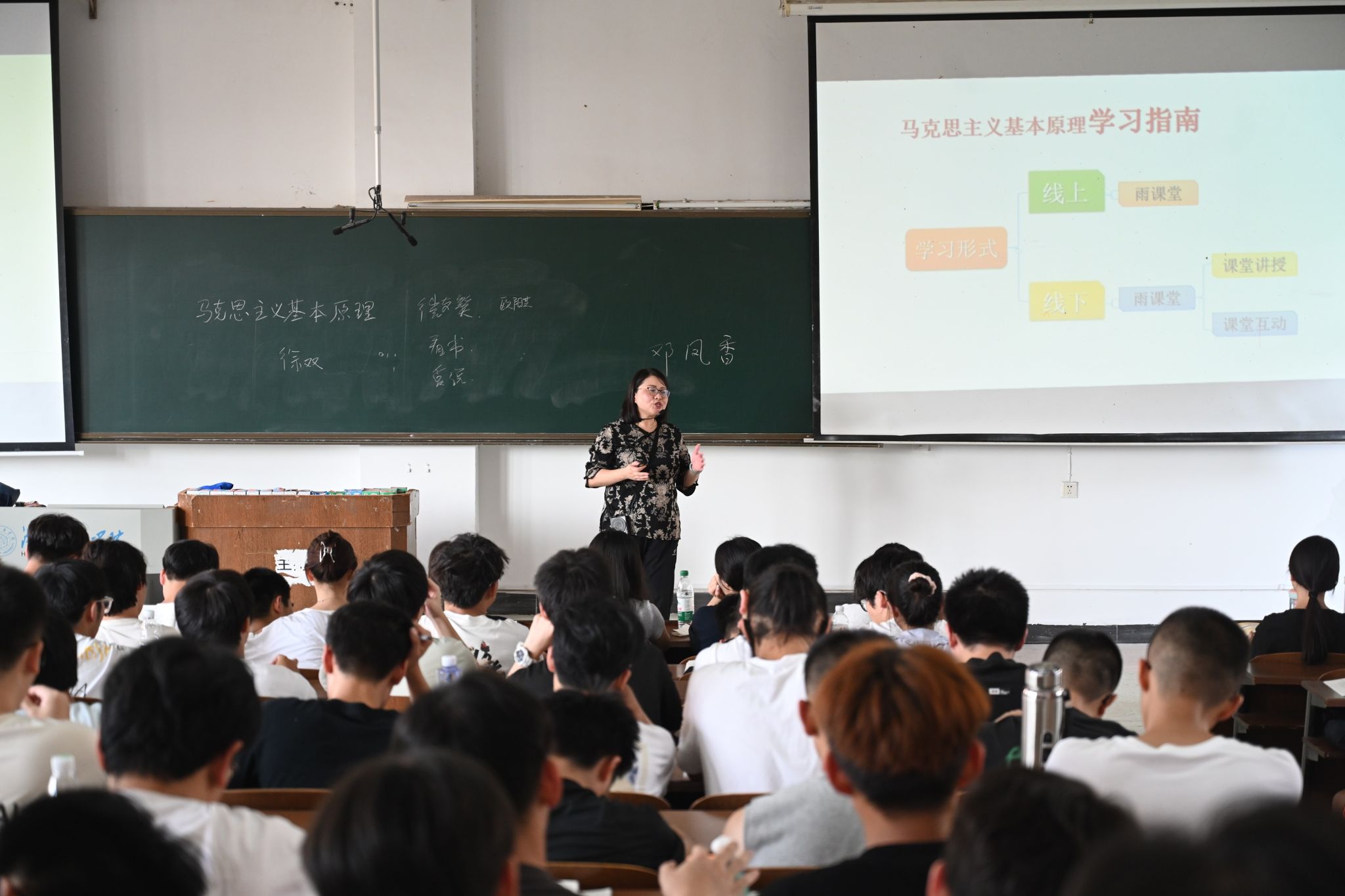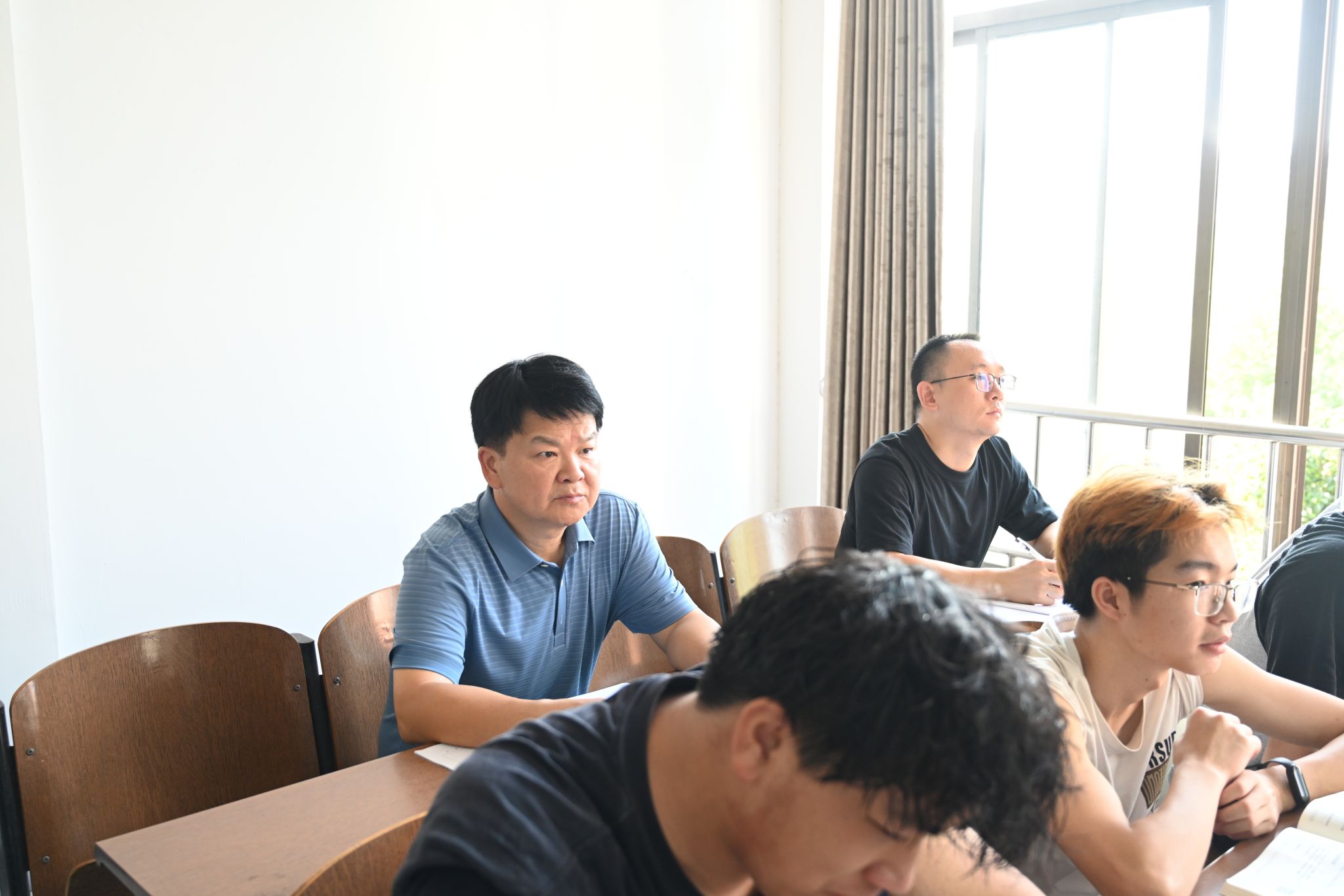 汤放华来到一教学楼201教室,与学生同上“马克思主义基本原理”课程。课堂上,他仔细观察师生上课听课状况,记录课堂有关情况。课后,他与任课教师亲切交谈,了解教学中存在的问题和困难,对教师课堂教学方法和技巧提出具体指导意见。