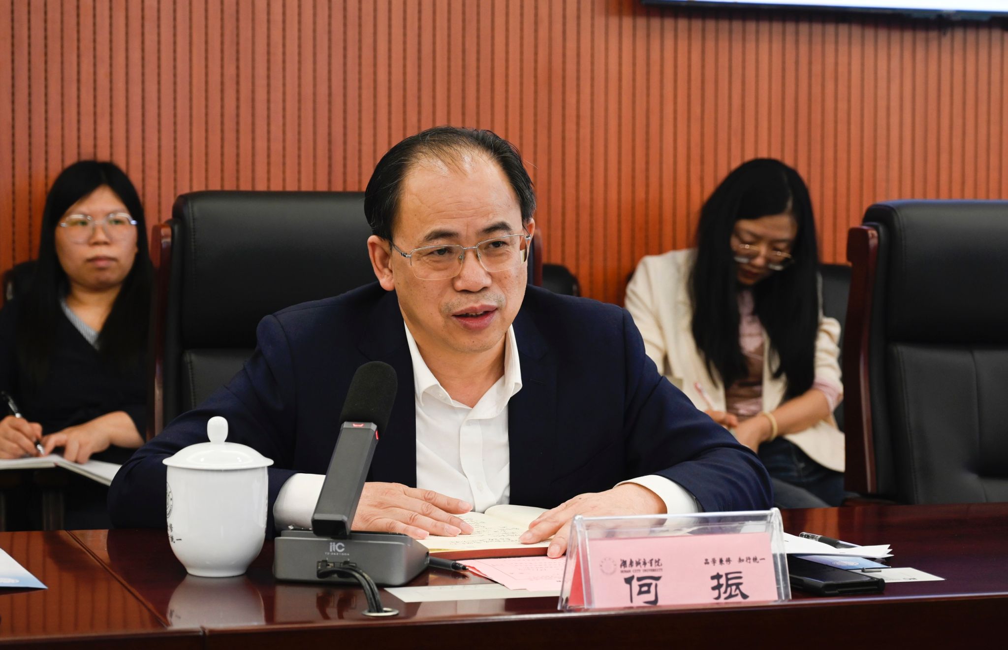 何振对潘碧灵一行的到来表示欢迎,并介绍了学校建设发展概况及统战工作情况。他表示,学校党委将进一步深入学习贯彻习近平总书记关于做好新时代党的统一战线工作的重要思想,落实好《中国共产党统一战线工作条例》和《党委(党组)落实统战工作责任制规定》,不断推进统战工作高质量发展,画好统一战线最大同心圆。