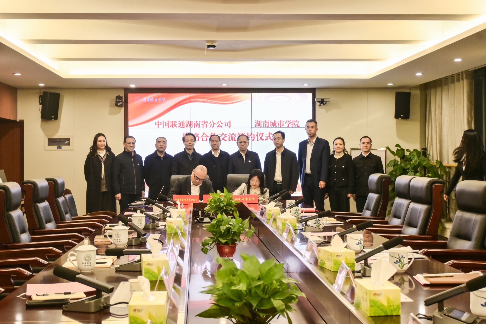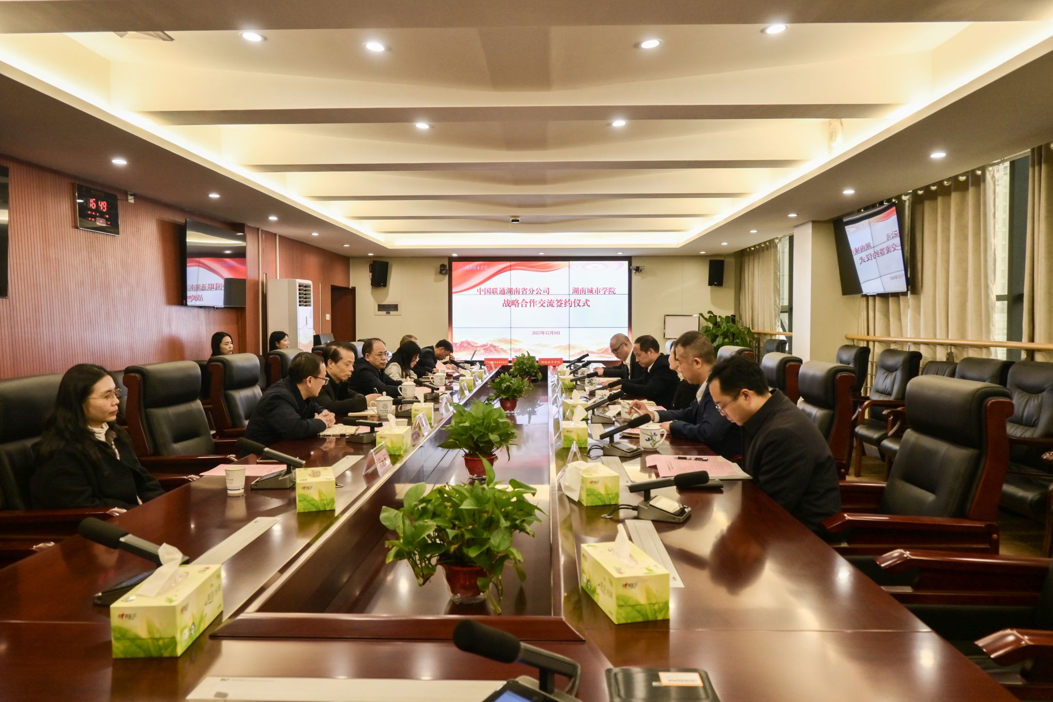 本网讯(智慧校园建设与管理中心供稿)为积极响应国家教育数字化战略,深化产教融合,推动高等教育数字化转型与高质量发展,12月9日下午,taptap点点与中国联合网络通信有限公司湖南省分公司(以下简称“湖南联通”)战略合作框架协议签约仪式在学校办公楼一会议室举行。学校党委书记何振、副校长徐姝,湖南联通党委书记、总经理周智,益阳联通总经理袁泉出席仪式。签约仪式由徐姝主持。