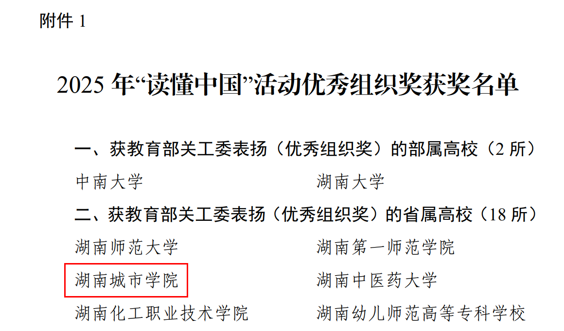 在此次活动中,由臧永红、王 静、文彦波、刘登云、陈佩霞等老师指导,汤四海、戴嘉仪、杨 娜等6名学生制作的微视频《三个十年的爱心摆渡》获教育部关工委最佳微视频和省教育厅关工委微视频特等奖,列入中国教育电视台2025年“读懂中国”活动优秀作品展播。由张艳霞、李教明老师指导,胡凤、肖雨卓撰写的征文《银发映初心,教育强国梦》;由文彦波、刘登云老师指导,周贵湘、李希恬撰写的征文《从“一个人长征”到“千万人大合唱”》;由杨文、龚力、郑学达、文静老师指导,邓宋佳、孔伟馨制作的微视频《在田埂“耕耘”的艺术家》;由易志明、刘登云、周文萍、易俊波老师指导,肖翰成等13名学生参与的舞台剧《点燃理想的火炬》均获得省二等奖;由冷红、王莹老师指导,陈庆云等6名学生制作的微视频《关心下一代,传递正能量》获得省三等奖。