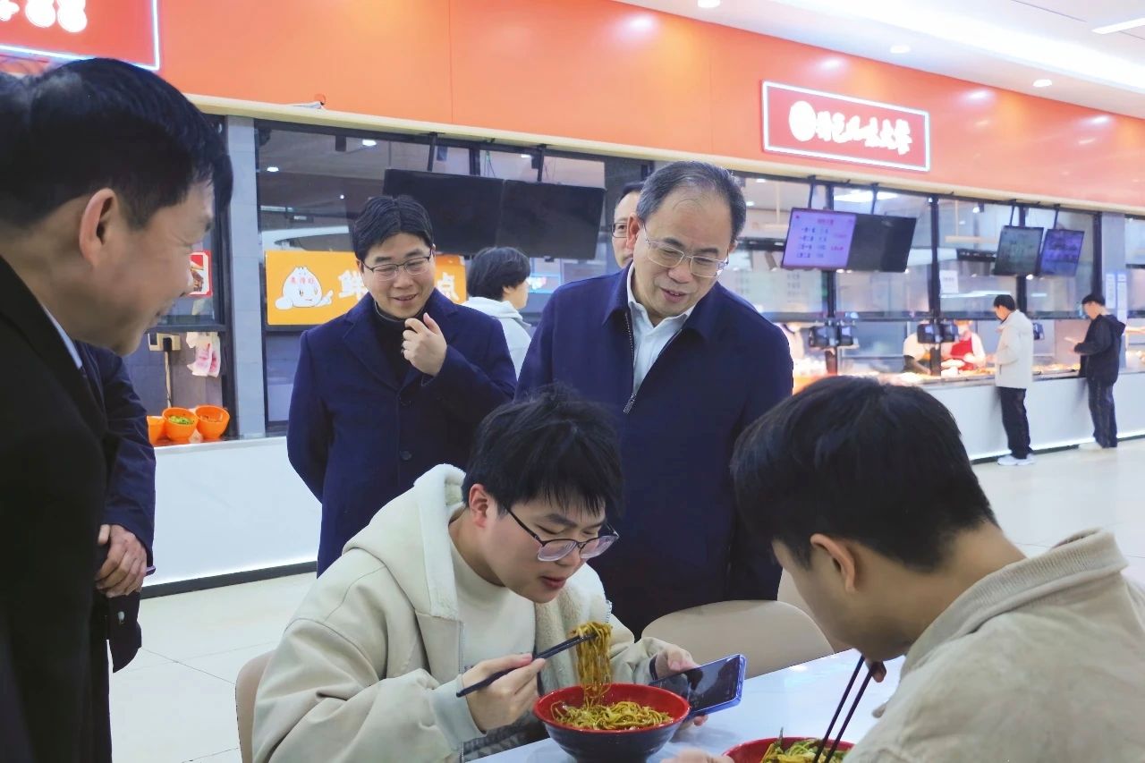 在学生食堂,校领导详细了解菜品营养搭配、定价标准、卫生清洁及学生用餐体验等情况。何振强调,要牢牢守住校园食品安全底线,以营养为核心优化菜品供给,切实保障学生吃得安全、吃得营养、吃得实惠,让校园餐饮服务更有温度、更贴民心。