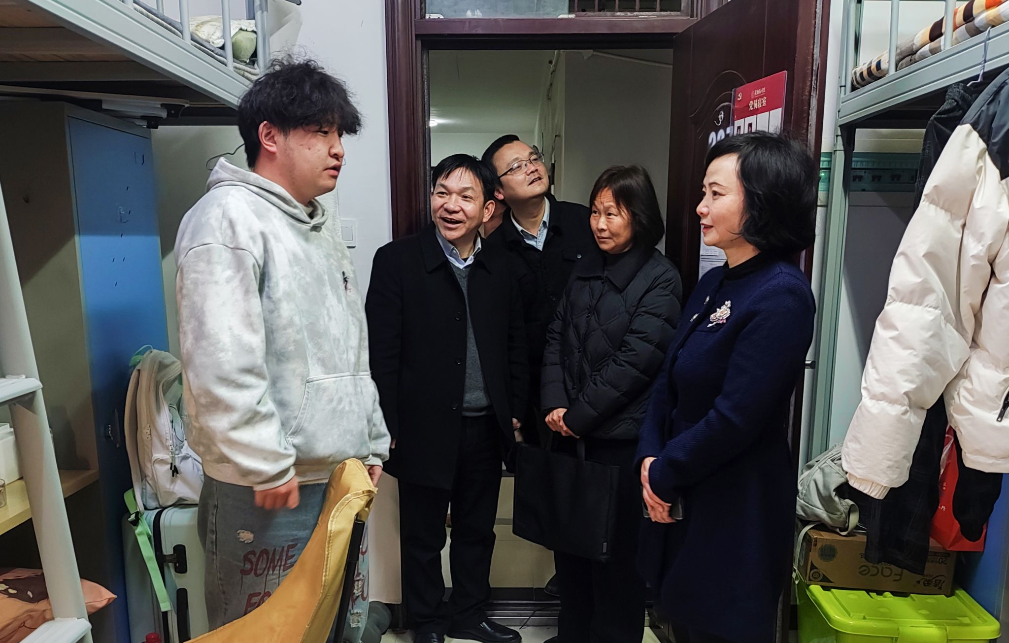 校领导来到学生公寓,看望了刚刚返校的学生,仔细查看公寓楼消防设施、用电安全及生活服务配套情况。陈瑜叮嘱相关部门,要以学生需求为出发点,将“细致”融入日常、“温度”注入服务,确保每一位学子住得安心、舒心、暖心。