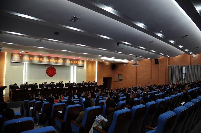 上午12:00,大会举行了闭幕式,校长李建华主持会议。与会代表以举手表决的方式通过了《〈校长工作报告〉决议》、《〈工会工作报告〉决议》、《〈财务工作报告〉决议》。