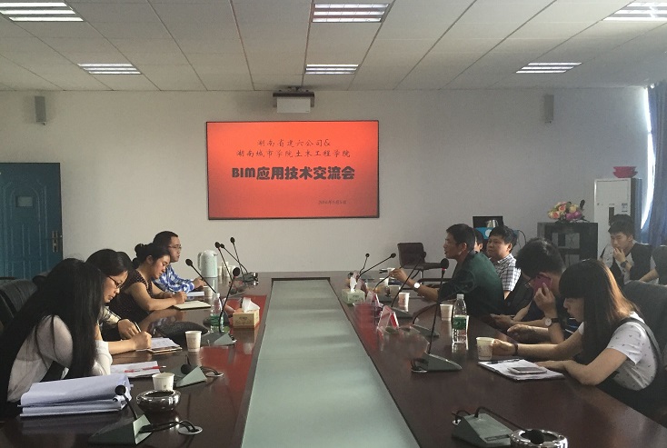 曾宇宣一行在土木楼828大会议室举行了“湖南六建BIM技术应用交流”学术讲座,并与土木院相关负责人及专任教师代表就BIM技术的应用进行了交流。