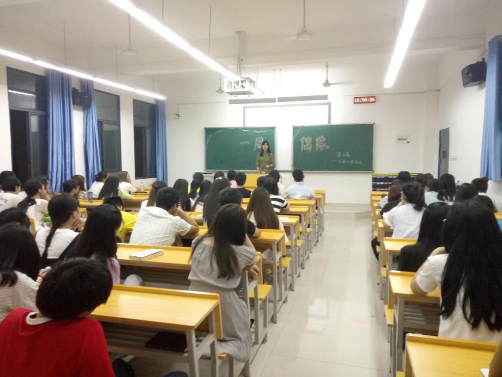 “一周偶像”活动借鉴央视“开讲啦”活动的创意和模式,邀请商学院和学校其他学院高年级优秀学生代表作为主讲嘉宾,利用大一新生晚自习的时间与他们进行面对面交流互动,并对他们进行学习和生活上的指导。本学期开学以来,商学院先后精心策划和组织了题为“大学生在校学习工作经验”、“如何学好英语”、“大学生创业”、“大学生实习经验”等四期“一周偶像”活动。由于形式新颖独特,“一周偶像”活动自推出后,受到了大一新生们的热烈欢迎,教室几乎场场爆满,同时也吸引了许多高年级学生和其他学院学生的参加。