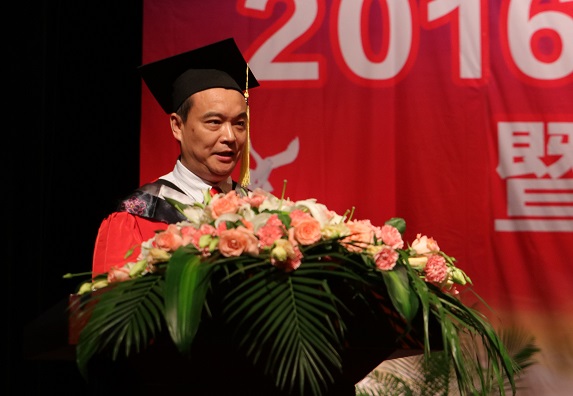 校长李建奇向2016届毕业生致辞。他代表学校向圆满完成学业的2016届毕业生同学们表示热烈祝贺,向为了学生成长辛勤耕耘的全体教职员工表示衷心的感谢,向含辛茹苦支持和关注学生顺利完成学业的家长们表示诚挚的问候!
