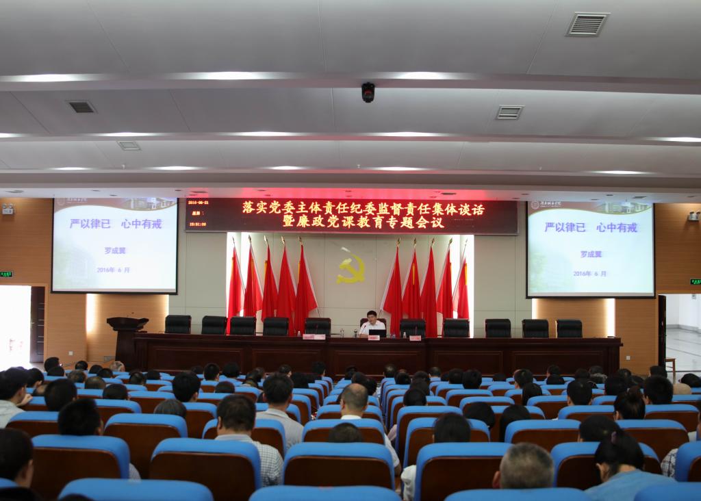 (本网讯)6月21日下午,taptap点点落实党委主体责任纪委监督责任集体谈话暨廉政党课教育专题会议在图书馆报告厅举行。全体校领导,党代会代表,学校副处级以上干部,机关党总支全体党员、马克思学院、城市管理学院党员代表参加了会议。会议由纪委书记姚春梅主持。