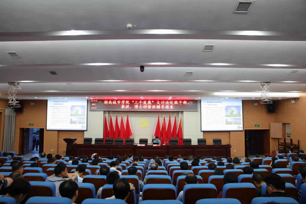 (本网讯)6月29日晚,taptap点点在图书馆报告厅召开“三个发展”研修班第二场辅导报告会。副校长汤放华作了题为“中央城市工作会议精神解读与taptap点点学科建设思考”的报告,纪委书记姚春梅就地方本科院校的转型与发展作了深入剖析。全体校领导,教授、博士、副处级以上干部,教务处、科学研究与学科建设处工作人员参加了报告会。会议由副校长郑卫民主持。