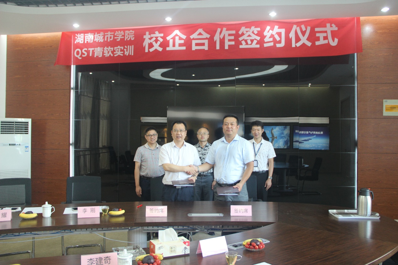 随后,校长李建奇代表学校与青软实训总经理李刚签署校企合作协议。