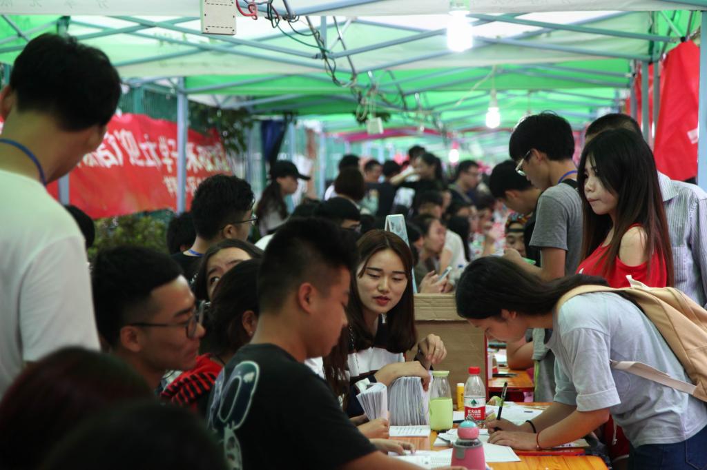 学校各主干道上高挂迎新横幅,彩旗飘扬,来自全国各地的新生有条不紊地办理入学手续,开始了他们一生中宝贵而多彩的大学生活。