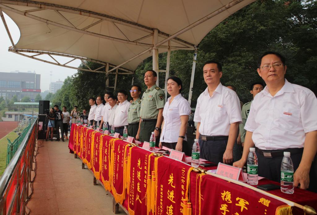党委书记罗成翼在武装部部长贺正宜和郑冰上校的陪同下,检阅了由参训新生组成的方队。