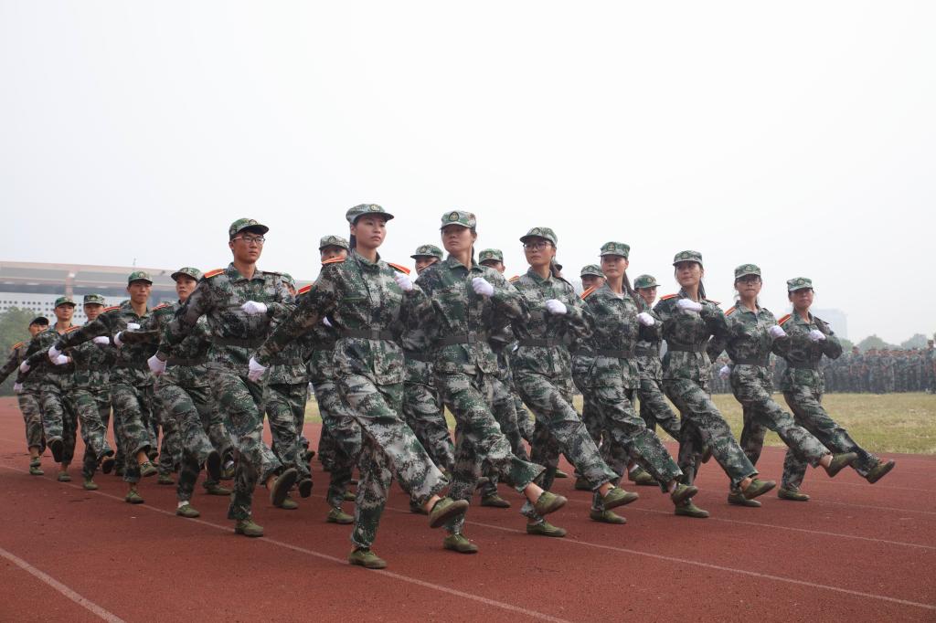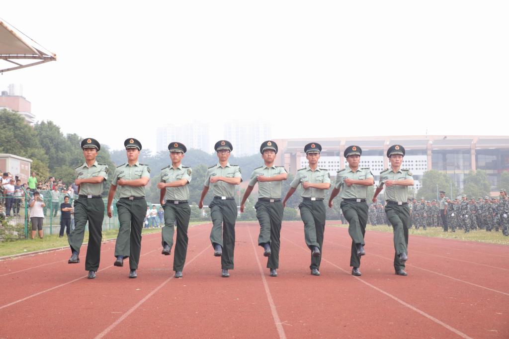 随后,伴随着激昂的分列式进行曲,由各连方队进行了分列式表演,同学们以饱满的精神、整齐的步伐、响亮的口号经过主席台,赢得了观众的阵阵掌声。