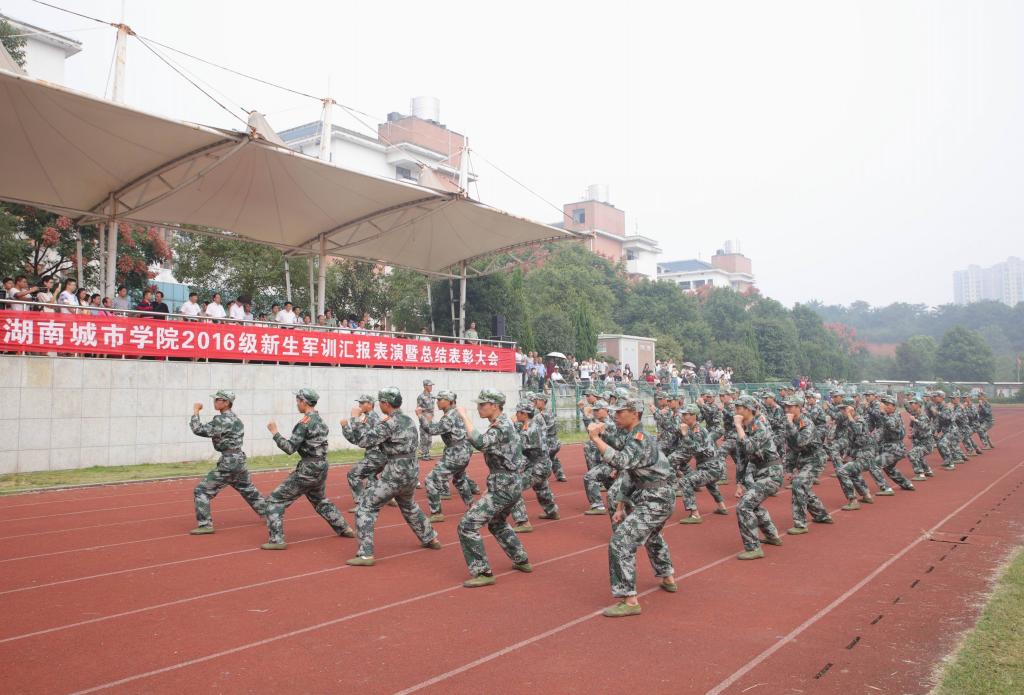 (本网讯)军歌嘹亮,激情似火,金秋的早晨弥漫着醉人的丹桂花香。9月 26日上午,taptap点点在田径场隆重举行2016级新生军训汇报表演。经过12天的严格训练后,2016级新生以挺拔俊俏的英姿、刚劲有力的步伐、蓬勃激昂的青春,向学校、老师和家长交上了步入大学后的第一份优秀答卷。省军区作训处参谋张智中校、省教育厅体卫艺处调研员文麦秋、承训单位国防科技大学指挥军官基础教育学院二旅副旅长郑冰上校,校领导罗成翼、汤放华、姚春梅、何振、雷存喜、谭献良、范志超,相关处室、二级学院负责人,辅导员、新生班主任以及近4000名新生参加军训汇报表演。