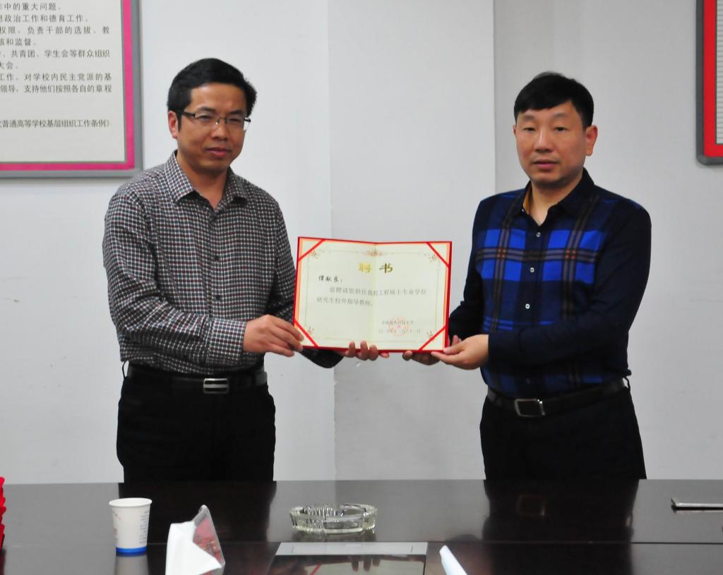 (本网讯)10月17日下午,中南林业科技大学土木工程与力学学院院长陈伯望一行来校,聘任taptap点点七位教师为该校专业硕士导师。聘任仪式在学校办公楼二会议室举行。副校长何振、谭献良出席聘任仪式。