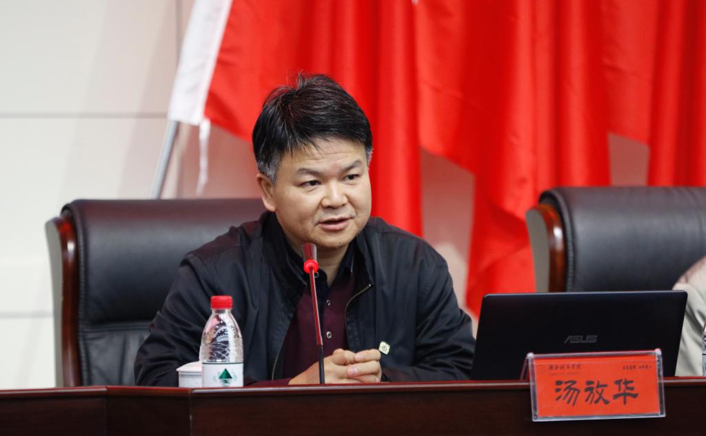 汤放华代表学校向与会学者、嘉宾表示热烈欢迎和诚挚问候,并简要介绍了学校近年来在学科建设、研究成果方面取得的业绩和十三五规划简况。