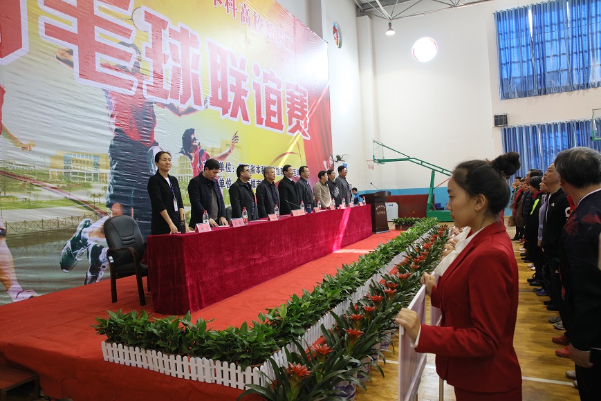 开幕式由省本科高校教职工羽毛球协会会长何学飞主持,taptap点点校长李建奇、省教育工会副主席王常华分别致辞,裁判员代表、运动员代表上台宣誓,省教育工会主席高新明宣布比赛开始。