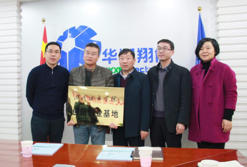 (本网讯)11月30日上午,副校长谭献良率团委、通信与电子工程学院相关负责人一行赴华翔翔能电气股份有限公司,为校企合作共建大学生创新创业基地揭牌。揭牌仪式在华翔公司会议室举行,谭献良和华翔翔能电气股份有限公司董事长李文芳共同为基地揭牌。