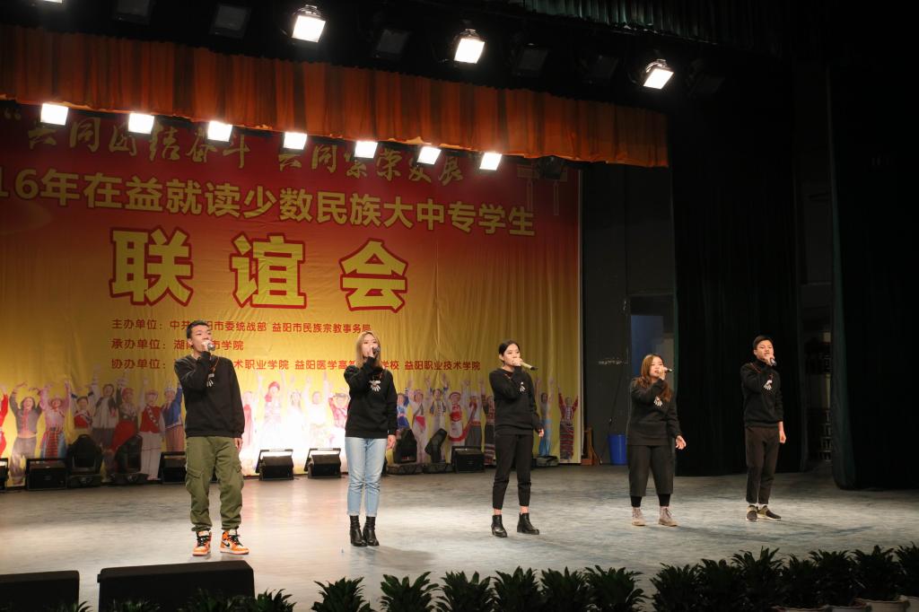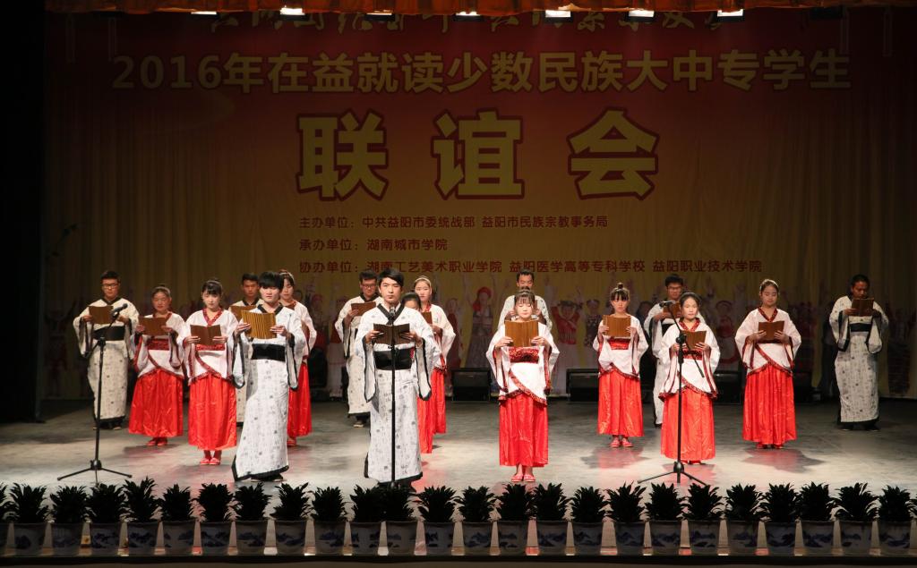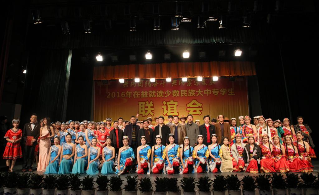 (本网讯)12月18日下午,2016年在益就读少数民族大中专学生联谊会在taptap点点音乐厅隆重举行。联谊会由市委统战部、市民族宗教事务局主办,taptap点点承办,湖南工艺美术职业学院、益阳医学高等专科学校、益阳职业技术学院协办,主题为“共同团结奋斗 共同繁荣发展”。益阳市委宣传部、市委统战部、市民族宗教事务局、市公安局、市教育局、市文体广新局以及四所高校相关负责人出席联谊会。