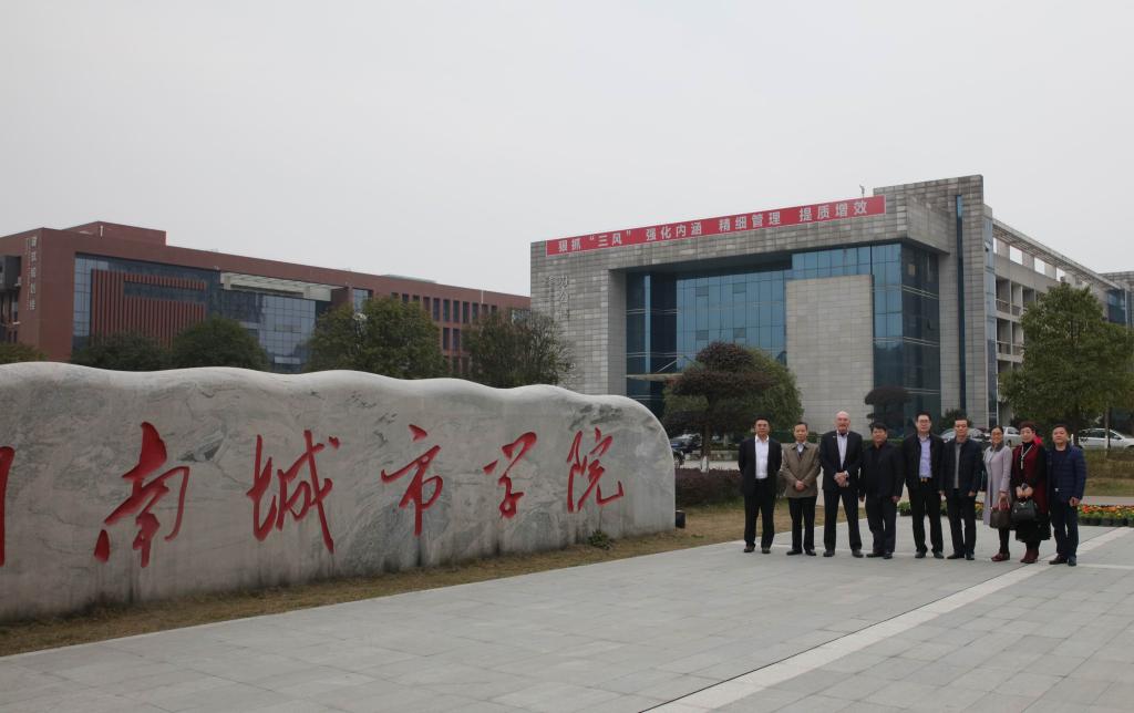 (本网讯)2月27日下午,美国波谱航空公司系统公司总裁、首席执行官弗兰克·巴拉哈、董事会成员徐邦、执行副总裁王兵一行3人来校访问,益阳市赫山区副区长夏洁、衡龙新区主任周彪、赫山区发改局副局长李志芳陪同访问,校党委书记罗成翼,副校长夏宏宇、雷存喜热情接待了弗兰克·巴拉哈一行,双方在办公楼一会议室召开座谈会。继续教育学院、国际交流处、机电工程学院负责人参加了座谈会。会议由夏宏宇主持。