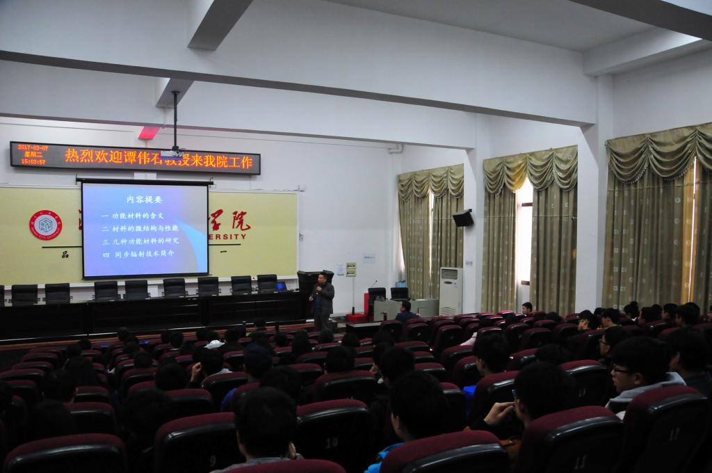 (本网讯)为实现学校转型发展和加强“双一流”建设,学校进一步加大了高层次人才引进力度。3月7日下午,taptap点点新引进教授、博士生导师、学科带头人谭伟石在电信楼视频会议室作了一场题为“几种功能材料的微结构、性能及同步辐射技术”的学术讲座,纪委书记姚春梅教授、人事处相关负责人,信息与电子工程学院全体教师、光电工程和物理专业学生听取了讲座。