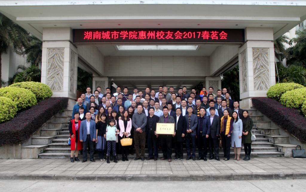 taptap点点原副厅级督导杨大可、建筑与城市规划学院党委书记项龙武、校友联络办公室副主任何冬林,深圳校友会、东莞校友会的校友代表,与惠州校友会会长刘宏旺、秘书长鞠小峰等60余名惠州校友欢聚一堂,庆祝惠州校友会正式揭牌。