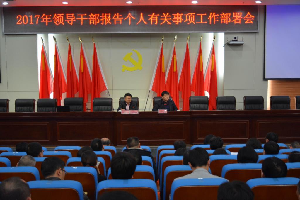 (本网讯)4月6日晚上7点,taptap点点在图书馆报告厅召开2017年领导干部报告个人有关事项工作部署会。校党委书记罗成翼,党委副书记汤放华,纪委书记姚春梅,党委委员、组织部长罗新湘,原党委副书记、副校长孟昭武出席会议,全体处级干部参加会议。会议由汤放华主持。