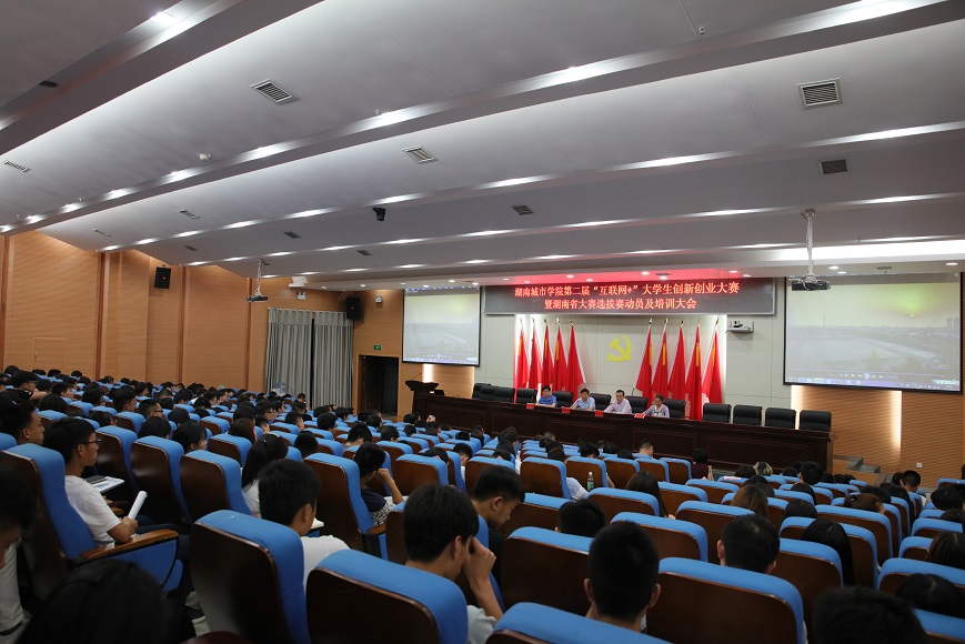 (本网讯)6月6日,学校在图书馆报告厅召开了taptap点点第二届“互联网+”大学生创新创业大赛暨湖南省大赛选拔赛动员及培训大会。副校长雷存喜、谭献良,教务处相关负责人、创新创业导师、团委、学生处、招生就业处、应用与创新创业学院负责人、二级学院负责学科竞赛副院长、负责学生工作副书记、各班班长、学习委员参加了会议。