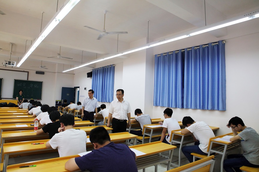 (本网讯)为及时了解学校期末教学工作运行情况,严肃考试纪律,6月28日,校长李建奇、副校长雷存喜在教务处、学生处相关负责人陪同下对本学期期末考试工作进行了现场检查。