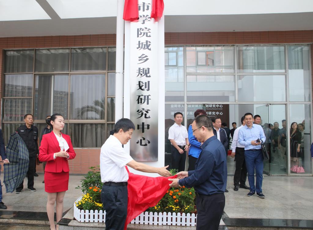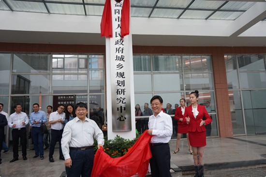 张值恒和罗成翼共同为益阳市人民政府城乡规划研究中心揭牌