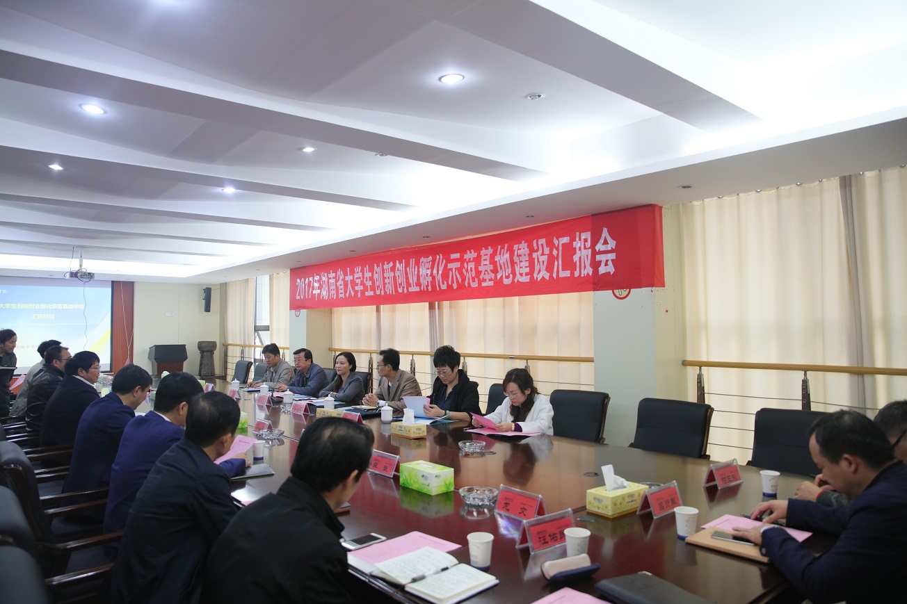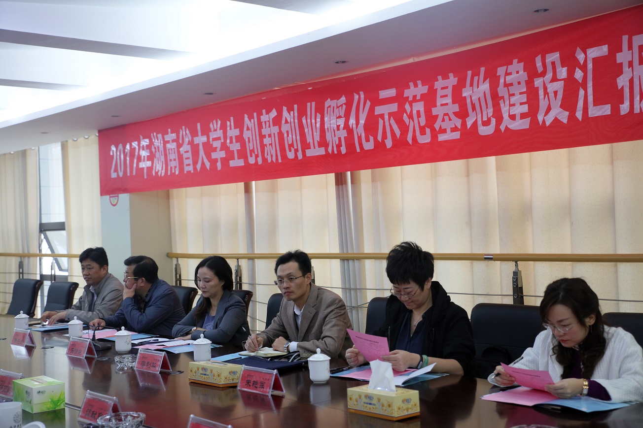 (本网讯)10月23日上午,受省教育厅委托,以湖南人文科技学院副院长石潇纯为组长的2017年湖南省高校大学生创新创业孵化示范基地评审组专家一行六人来校,对taptap点点大学生创新创业孵化示范基地建设情况进行评审。校领导罗成翼、李建奇、郑卫民、何振、谭献良出席会议,党政办、宣传部、人事处、教务处、科技处、学生处、团委等部门负责人,以及建规院、信电院、艺术学院、设计院、应创学院院长参加了汇报会和意见反馈会议。