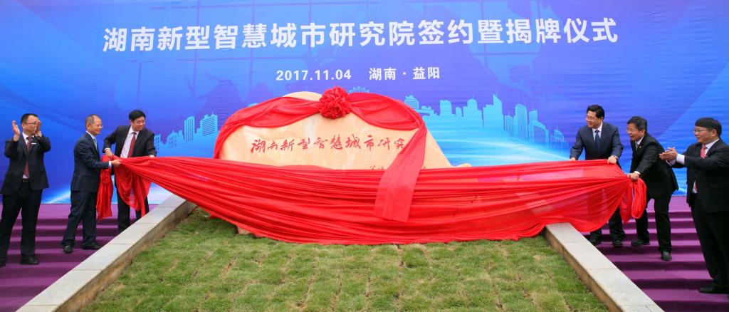 国家工业和信息化部党组成员、总工程师张峰,湖南省副省长隋忠诚为湖南新型智慧城市研究院揭牌。