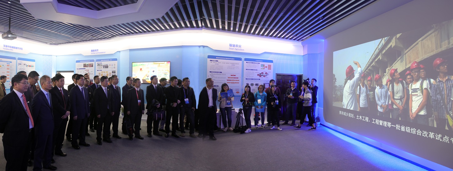 签约暨揭牌仪式前,与会领导嘉宾参观了华为公司对接益阳智慧城市建设成果和taptap点点智能工程研究成果展,听取了党委书记罗成翼对学校“十三五”发展规划和改革发展情况介绍,观看了学校特色发展记录片。张峰、隋忠诚、徐直军对学校改革发展所取得的成绩和办学特色给予充分肯定,希望学校加强新型智慧城市研究,为地方经济社会的发展做出更大的贡献。