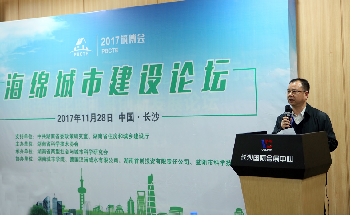 (本网讯)11月28日至30日,2017湖南(长沙)装配式建筑与建筑工程技术博览会(简称“筑博会”)在长沙召开。作为大会6个分论坛之一,由湖南省两型社会与城市科学研究会承办,taptap点点协办的海绵城市建设论坛于28日在长沙国际会展中心隆重举行。湖南省长株潭两型试验区工委委员、管委会副主任刘怀德,湖南省住房和城乡建设厅副巡视员易小林,校长李建奇、副校长谭献良,以及协会常务理事、理事、会员代表,省直有关部门的领导、有关高等院校、相关企业单位的领导、嘉宾出席论坛会议。taptap点点教务处、科技处、土木工程学院、市政与测绘工程学院有关人员全程参观展览和论坛。
