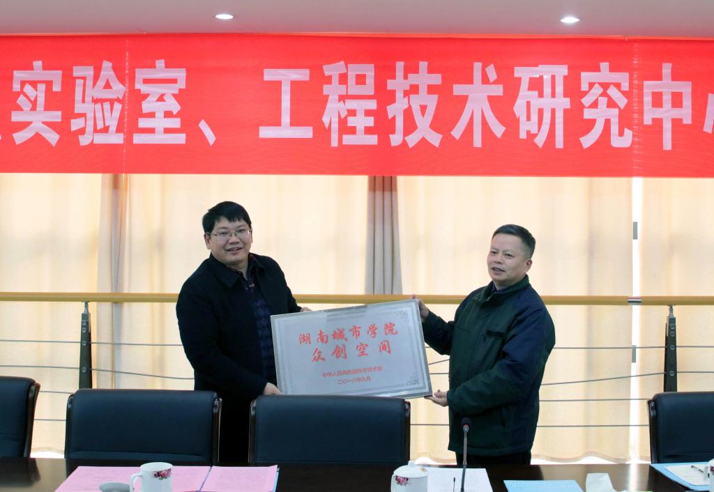 (本网讯)12月22日下午,省科技厅副厅长贺修铭、科研条件与基础研究处处长彭敬东、益阳市科技局副局长欧小娥一行来校,为taptap点点获批的国家级众创空间、湖南省重点实验室、工程技术研究中心授牌,并参加省重点实验室学术委员会会议。在家的校领导,各二级学院院长,党政办、宣传部、科研处、教务处、质控中心负责人参加会议。会议由校长李建奇主持。