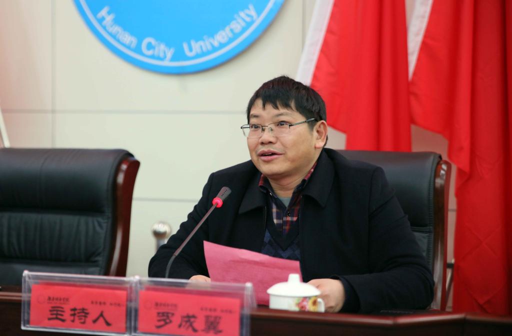 (本网讯)12月26日下午2:30,德智讲堂第二十四讲在逸夫图书馆报告厅举行。湖南省委宣讲团成员、省委讲师团副主任邓清柯教授应邀来校,以“照亮中华民族伟大复兴的思想灯塔”为题作了一场习近平新时代中国特色社会主义思想学习辅导报告。在家的校领导出席了报告会,科级以上干部、党支部书记和马克思主义学院全体教师参加了报告会。报告会由党委书记罗成翼主持。