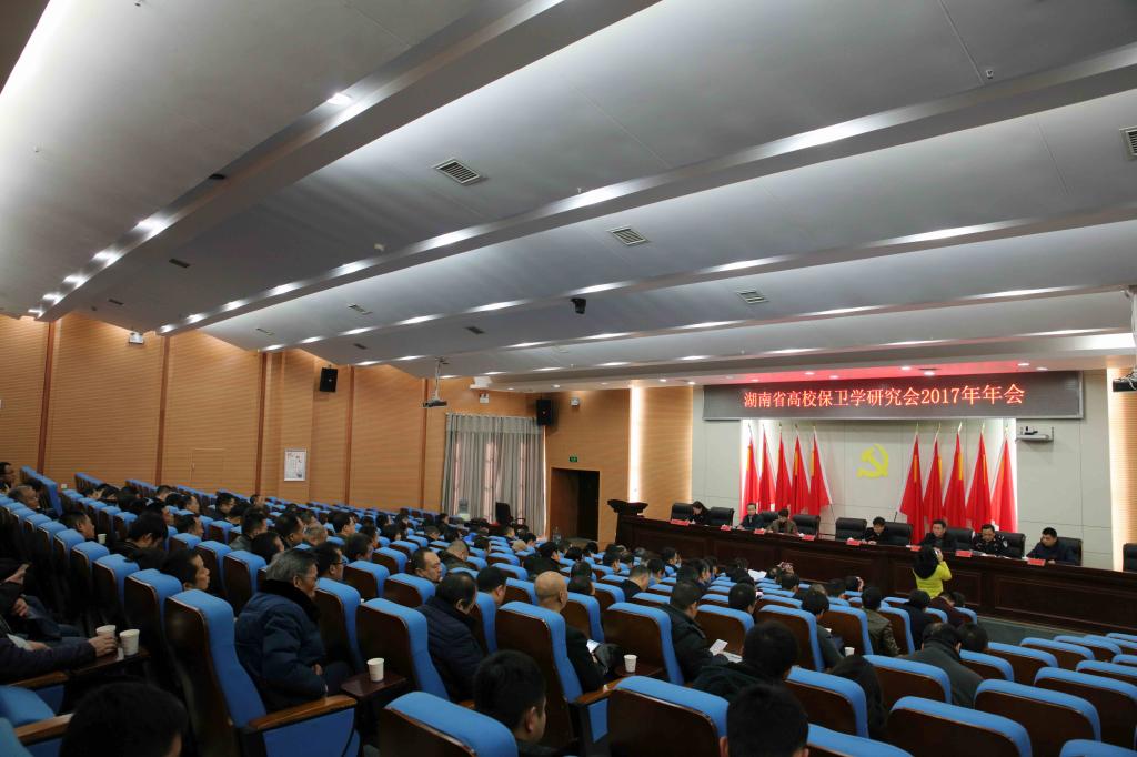 (本网讯)1月12日,湖南省高校保卫学研究会2017年年会在taptap点点图书馆报告厅隆重举行。校长李建奇、副校长夏宏宇,湖南省高校保卫学研究会理事长、湖南女子学院副校长周松涛,湖南省国家安全厅涉外安全保卫总队副总队长何维良,省公安厅文保支队支队长刘全利,省教育厅维稳办主任朱日红,taptap点点法制副校长、益阳市公安局常务副局长李克良等出席会议。全省80余所高校共160余人参加了会议。会议由湖南省高校保卫学研究会秘书长、湖南女子学院保卫处处长龙荣华主持。