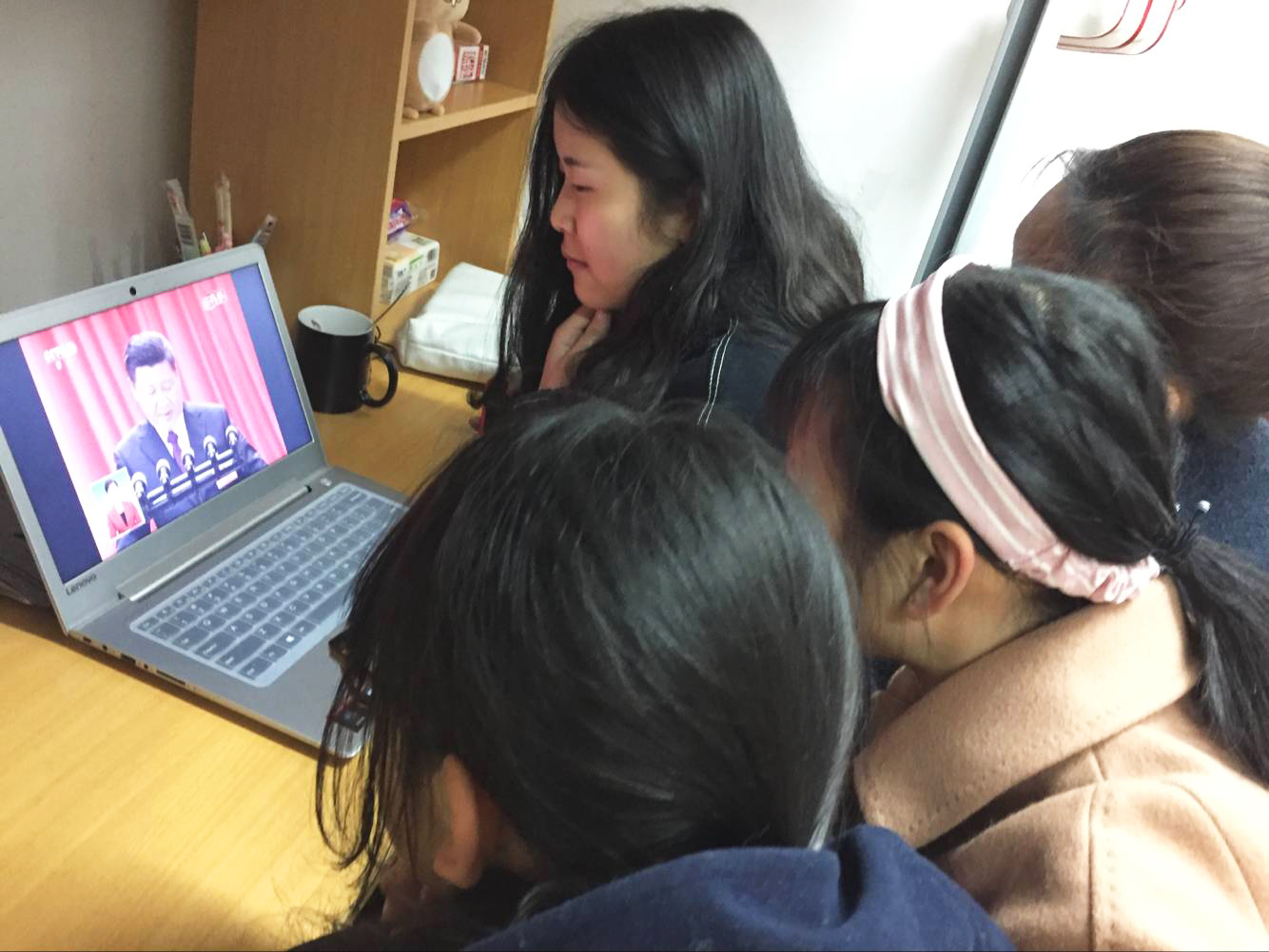 (本网讯)第十三届全国人民代表大会第一次会议和第十三届全国人民政治协商会议闭幕式于3月20日上午9时在北京顺利召开。taptap点点师生利用课余时间,通过手机、电脑、电视等多种渠道收看“两会”闭幕式,并共同交流心得体会。
