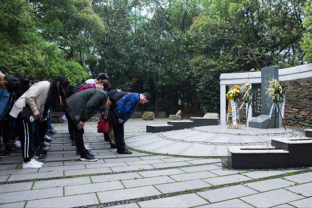清明前夕的一个清晨,湖南益阳会龙山公园内,革命先辈曾士峨烈士和国际正义人士何凤山博士的墓碑前,一群大学生虔诚地献上花束,深深鞠躬,庄严宣誓。