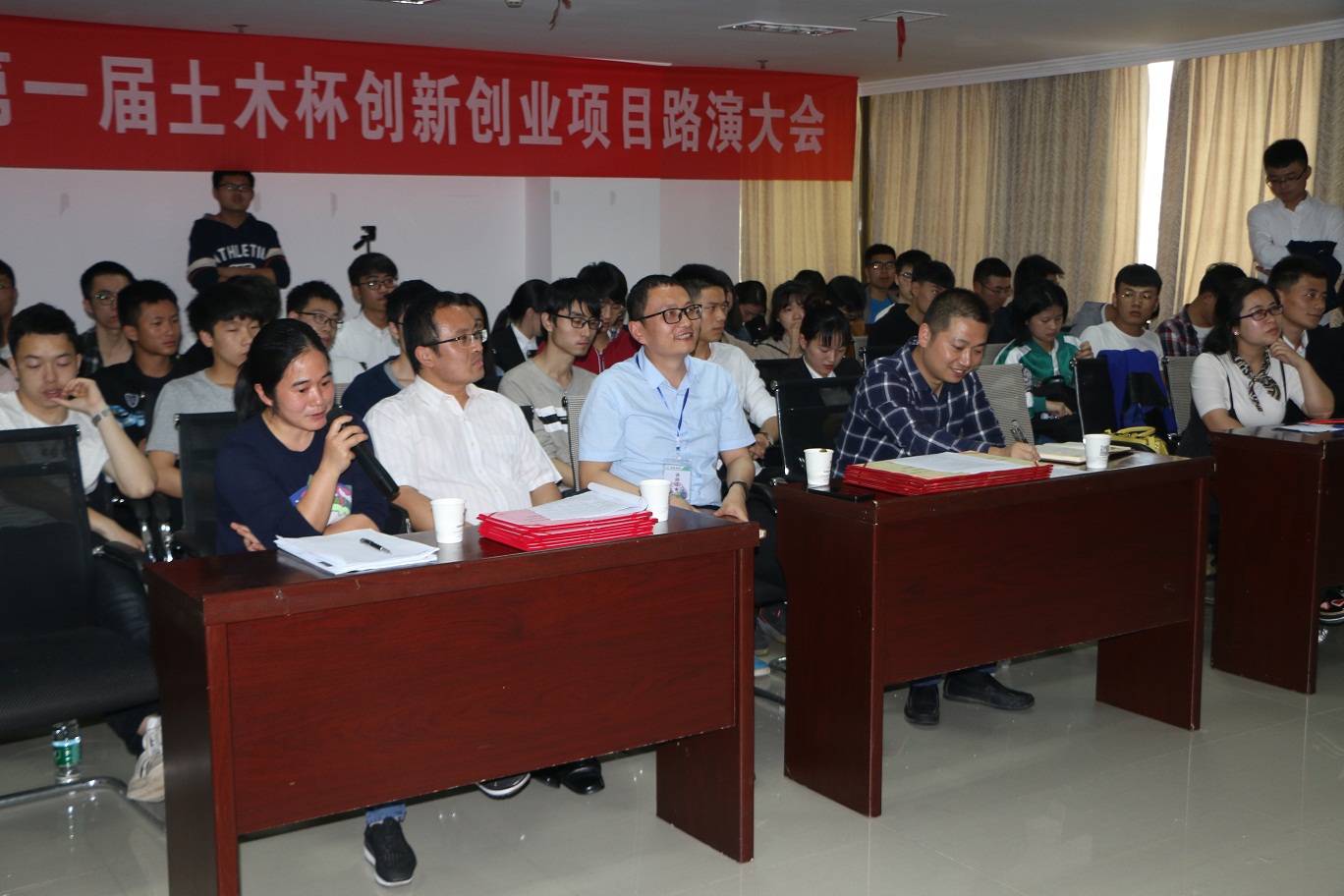 益阳市就业服务管理局副局长陈希,taptap点点土木工程学院党委副书记王皓、应用与创新创业学院创新创业教研室主任郭自嘉、学生工作处创业导师王宗新、土木工程学院分团委书记肖寒和创新创业导师刘益虹出席路演大会并担任评委,对项目进行评审。9个大学生主创团队及土木工程学院16级、17级各班科创委员到场参加。