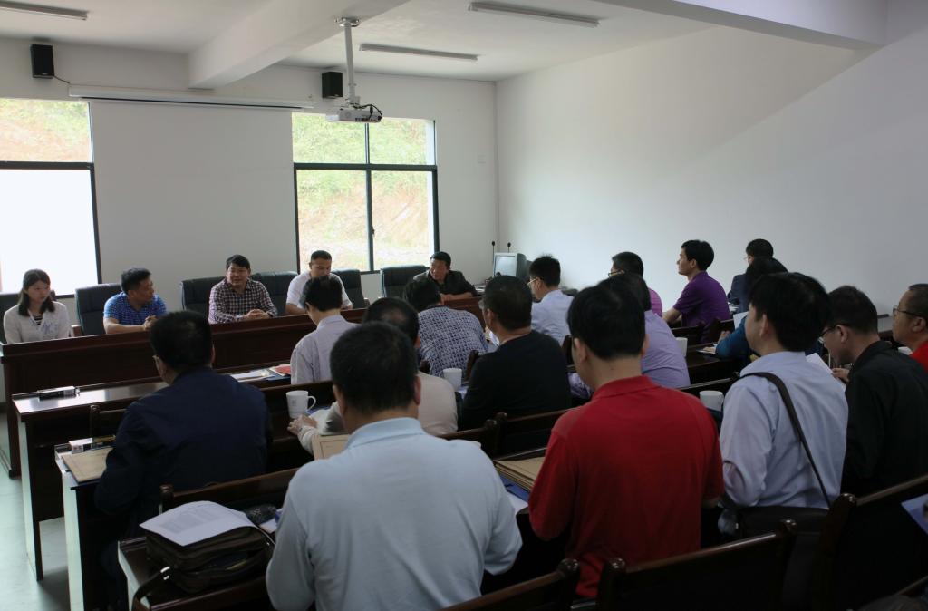 赴高马二溪村走访帮扶前,学校党委书记罗成翼、党委副书记汤放华与安化县县委书记熊哲文等县委县政府领导就高马二溪村脱贫工作进行交流。(图/文 博夕)