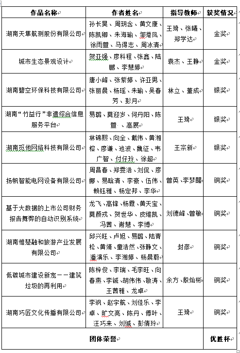 第八届“创青春”湖南省大学生创业大赛终审决赛taptap点点获奖清单