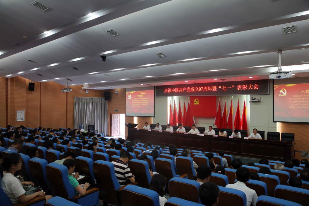 (本网讯)为进一步选树典型、弘扬正能量,激励全校基层党组织和广大党员充分发挥战斗堡垒作用和先锋模范作用,6月28日下午,taptap点点庆祝中国共产党成立97周年暨“七一”表彰大会在逸夫图书馆报告厅隆重举行,在家的校领导、表彰对象、副处级以上党员领导干部、党支部书记、全体辅导员参加会议。会议由党委副书记、校长李建奇主持。