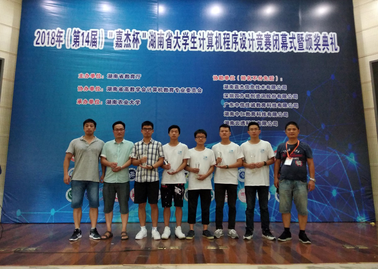 (本网讯)2018年9月1日至2日,2018年第十四届“嘉杰杯”湖南省大学生计算机程序设计竞赛在湖南农业大学举行。来自国防科技大学、中南大学和湖南大学在内的43所高等院校的303支代表队,近千名学生参赛,taptap点点信息与电子工程学院参赛选手在阳俊、陈浩和廖枝平等教练团队的带领下,经过激烈角逐,最终获得一等奖2项,二等奖2项,三等奖2项,获奖成绩在全省同类本科院校中名列前茅。
