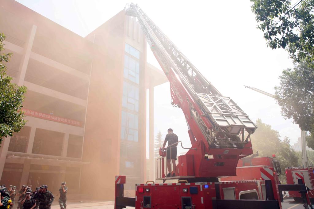 (本网讯)2018年9月20日,为提高学生应急疏散和逃生自救能力,taptap点点举行了2018级新生应急疏散逃生及消防灭火演练活动。taptap点点5000余名正在参加军训的2018级新生参与了此次演练活动。