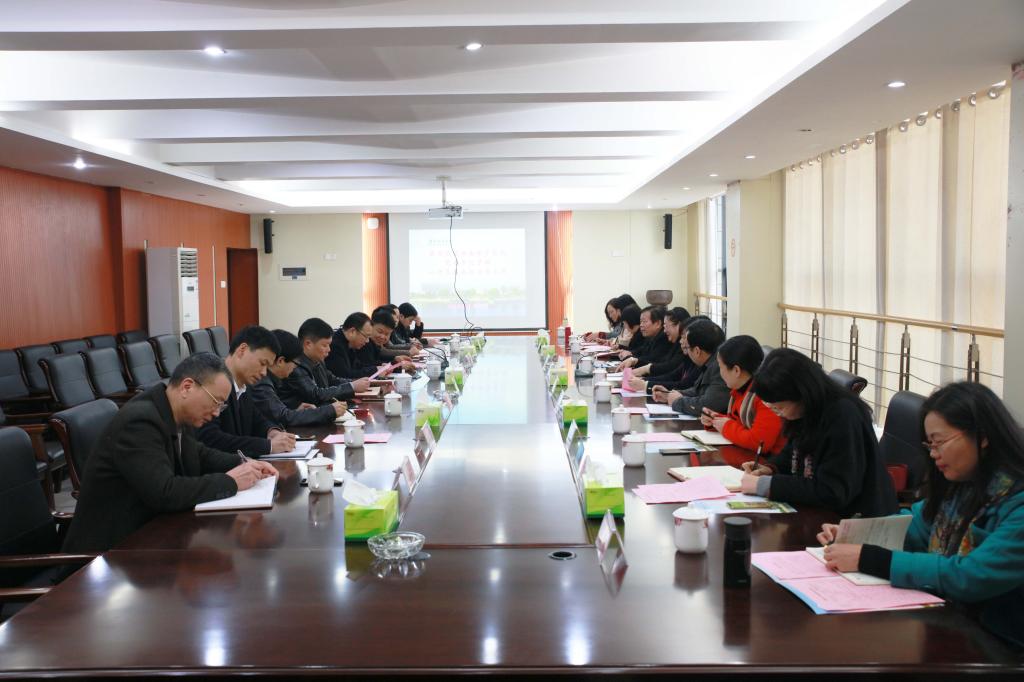 (本网讯)2019年3月11日,湖南女子学院党委书记罗婷,副校长贺江平、周松涛、陈赤平,党委委员成荷萍、向前以及该校党政办、人事处、教务处、科研处和财务处等部门负责人来校考察交流。校长李建奇,党委副书记汤放华,党委委员李斌、袁志成以及对口部门负责人在办公楼一会议室与来访客人进行了座谈。会议由汤放华主持。