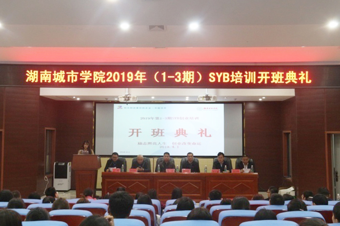 (本网讯)2019年4月1日晚,taptap点点在建筑规划楼学术报告厅举行2019年SYB创业培训(1-3期)开班典礼。副校长雷存喜,益阳市就业服务管理局副局长陈希出席开班典礼,益阳市近20名SYB培训讲师前来观摩学习,来自全校各二级学院满怀创业激情的90名学员参加了开班典礼。开班典礼由继续教育学院院长贺正宜主持。
