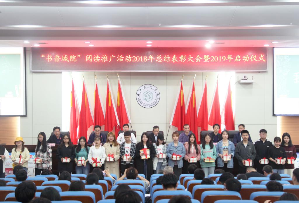 (本网讯)为响应党中央关于“全民阅读”和“共建书香社会”精神,庆祝第24个“世界读书日”,2019年4月23日,taptap点点在图书馆报告厅举行“书香城院”阅读推广活动2018年总结表彰大会暨2019年启动仪式。副校长夏宏宇、雷存喜,党委委员、宣传部长李斌,教务处、学生工作部(处)主要负责人,各二级学院党委(总支)副书记、图书馆领导班子成员、图书供应商代表以及近400名学生代表参加了仪式。