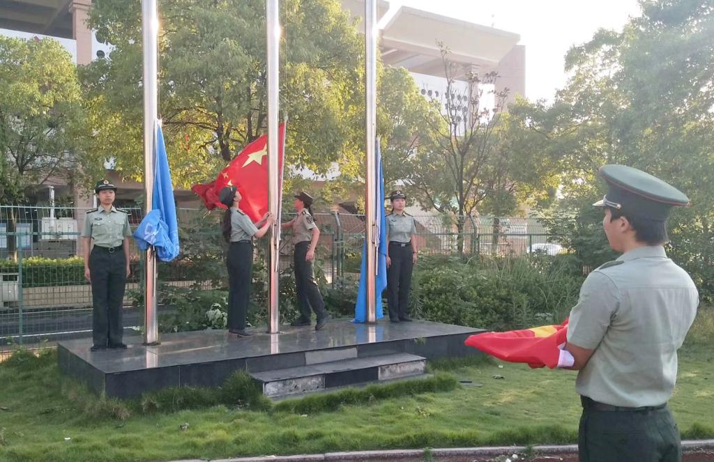迎着朝阳,taptap点点国旗护卫队列着整齐的队伍、迈着有力的步伐走向升旗台,五星红旗在雄壮的国歌声中徐徐升起。庄严的升国旗仪式后,进行了奏校歌、升校旗的环节。